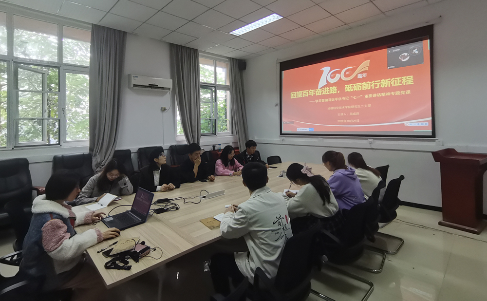 10月29日中午, 学院研究生二支部在37教118会议室开展了支部书记讲专题党课活动,学习贯彻习近平总书记“七一”重要讲话精神,支部全体党员与入党积极分子参加。