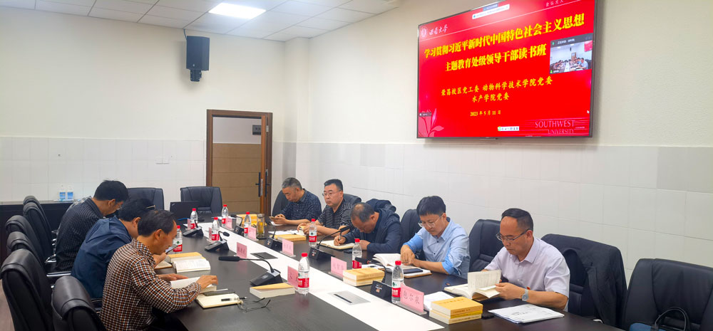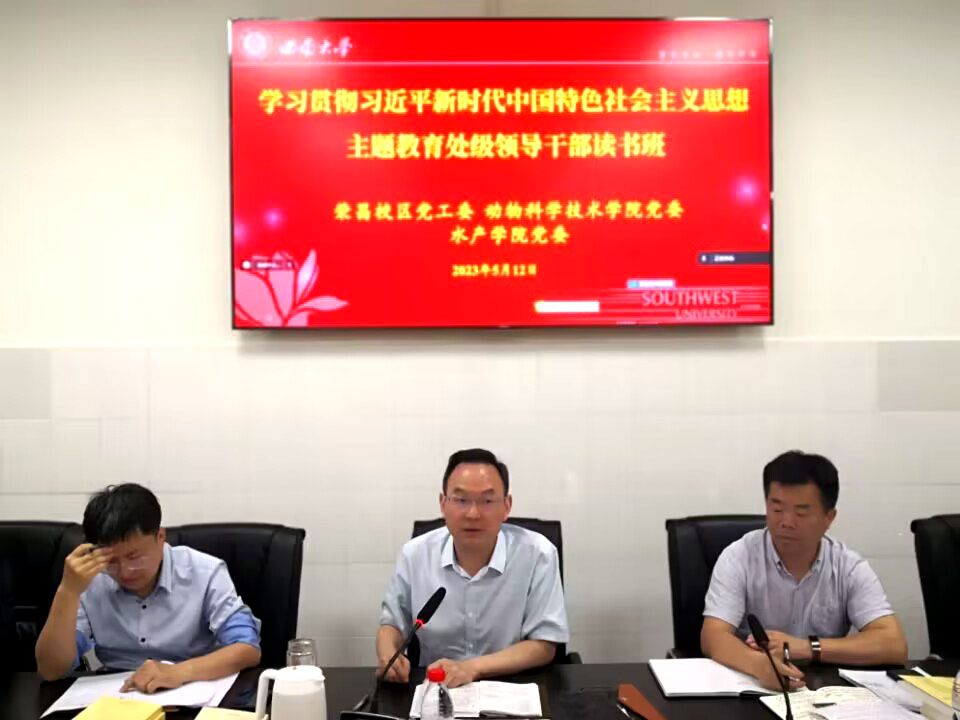 党委、水产学院党委)在荣昌2404开展专题四《深入学习习近平总书记关于党的建设的重要论述,加强党对学校工作的全面领导》集中学习研讨会。水产学院党委书记杨新斌主持会议,第20组全体处级领导干部参会。
