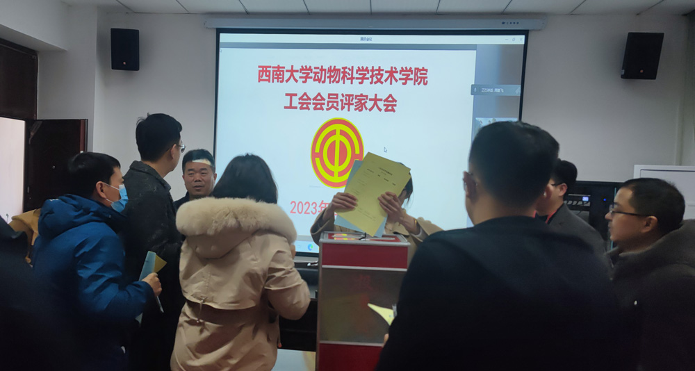 学院工会2022年10月进行了换届,本次评家活动由原主席杨远新同志就学院工会组织体系、改革发展、履职维权、促进职工素质、服务职工群众、加强自身建设等六方面报告了工作并进行个人述职。全体会员结合学院工会工作开展情况、建设“教职工小家”情况和工会主席履行职责情况进行了民主评议。经过无记名投票评议,学院工会年度工作、工会主席年度工作评价等次均为满意。