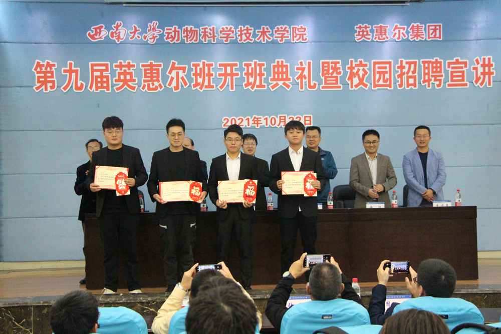 赵智华在致辞中向任泽林董事长一行表示诚挚欢迎,向开班典礼成功举办表示热烈祝贺。指出,学院长期致力于同农牧行业龙头企业的交流合作,不断拓宽校企合作领域,创新人才培养机制,在校企联合育人方面取得了显著成绩,“英惠尔班”就是校企合作的成功典范。他希望同学们不忘奉献“三农”初心,在“英惠尔班”这个大家庭里锐意进取、开拓创新,努力成长为一名优秀的现代畜牧科技人才。