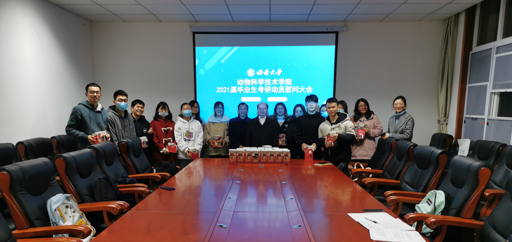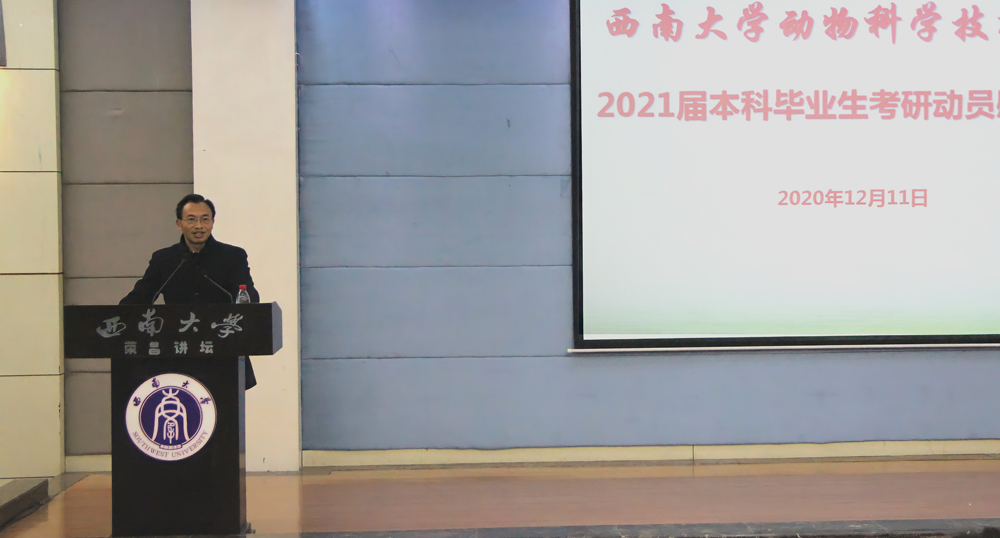 为帮助考研学子缓解考研压力、增强考研信心,学院12月11日、12日举行了主题为“寒冬送温暖 情系考研生”的2021届本科毕业生考研动员慰问大会,大会分别在荣昌校区2211报告厅和北碚校区37教219会议室举行,学院党委书记赵智华,副书记、纪委书记文武,副院长周克勇和毕业班辅导员及130余名2017级考研学生参加大会。