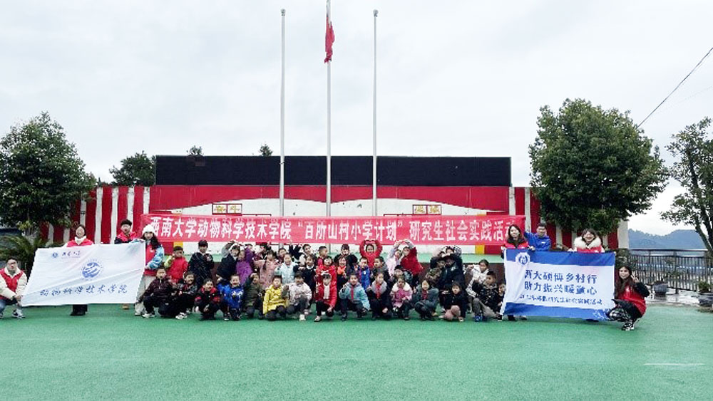 研究生志愿服务队深入重庆市綦江区安稳镇开展了“研究生硕博乡村行,助力振兴暖童心”社会实践活动,用专业助力乡村振兴、用爱心温暖留守儿童。