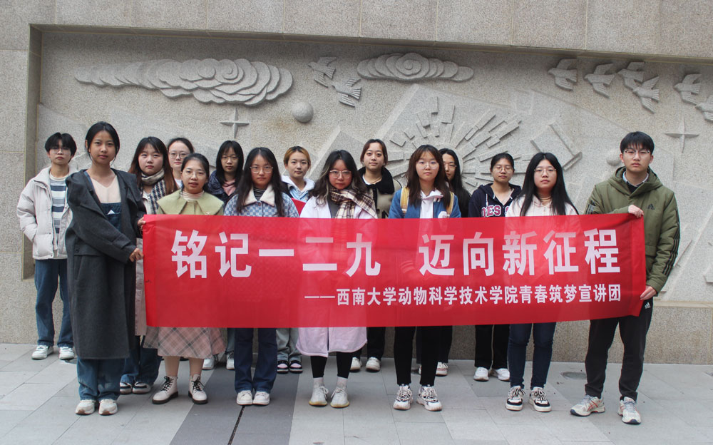 12月9日,“一二·九”抗日救亡运动88周年纪念日当天,学院“青春筑梦”宣讲团成员、团学干部及党员代表分别前往重庆市荣昌区烈士陵园和北碚区张自忠烈士墓开展纪念“一二·九”运动主题教育活动。