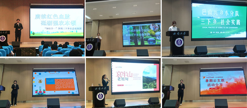 经过前期初选,共7支社会实践小分队和7位社会实践个人入围决赛。比赛中,“知行合一”实践团走访湖南普菲克、江西华裕集团、双胞胎集团,为人生道路找寻清晰方向;山东临沂青年小分队投身文化长河,利用直播与自媒体宣传书圣故居风采,拉紧历史与现实的纽带;巴南兴乡小分队前往干湾村,开展防诈宣传,为国家乡村振兴注入青春动能。个人展示中,蒋雨洁参加“扬帆逐梦计划”,利用亲身体验帮助在校大学生提升就业能力和职业技能;高珍前往云南哀牢山老旭甸化石村了解民情,磨练自身意志和责任担当;杨雅淇参加云支教活动,凭借互联网为山区教育事业献力。