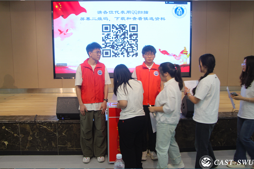 全体参会学生代表进行不记名投票,以差额选举形式民主选举学院2025-2026学年学生会执行主席。经过学生代表现场投票选举,大会选出2023级本科生谢天浩、黄玉妹、肖文靖3名同学为51风流