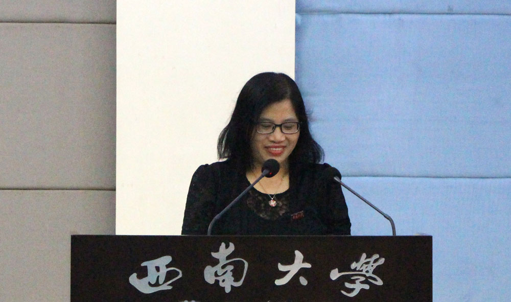 老生代表和新生代表在学院(荣昌)新生开学典礼发言