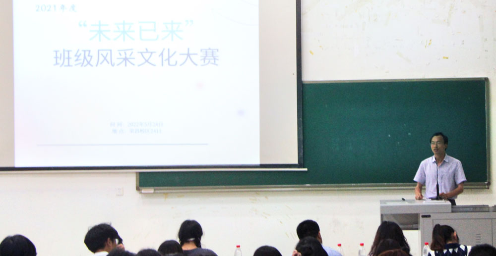 面向2021级本科生开展了以“未来已来”为主题的班级文化风采大赛。学院党委副书记、纪委书记文武,团委书记、学生工作办公室主任孙海军,辅导员彭香、朱恒宇和2021级全体班主任老师出席。
