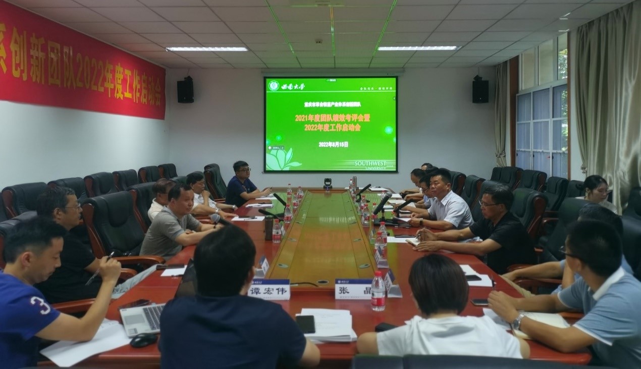 219会议室隆重举行。根据疫情防控管理需求,本次会议采用“线上+线下”结合的形式开展。重庆市农业农村委领导专家、首席专家、首席办成员、各研究室主任、各综合试验站站长及其团队成员参加了此次会议。会议由学院院长、团队首席专家赵永聚教授主持。