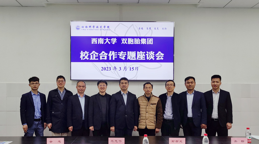 3月15日,双胞胎集团人力行政中心总裁熊志华带领西南区饲料总经理余忠、招聘调配部部长石贺龙、人力资源部长张元肖等来学院洽谈合作事宜。学院党委书记赵智华,党委副书记、纪委书记文武,副院长向钊、赵中权等参与洽谈,座谈会由向钊主持。