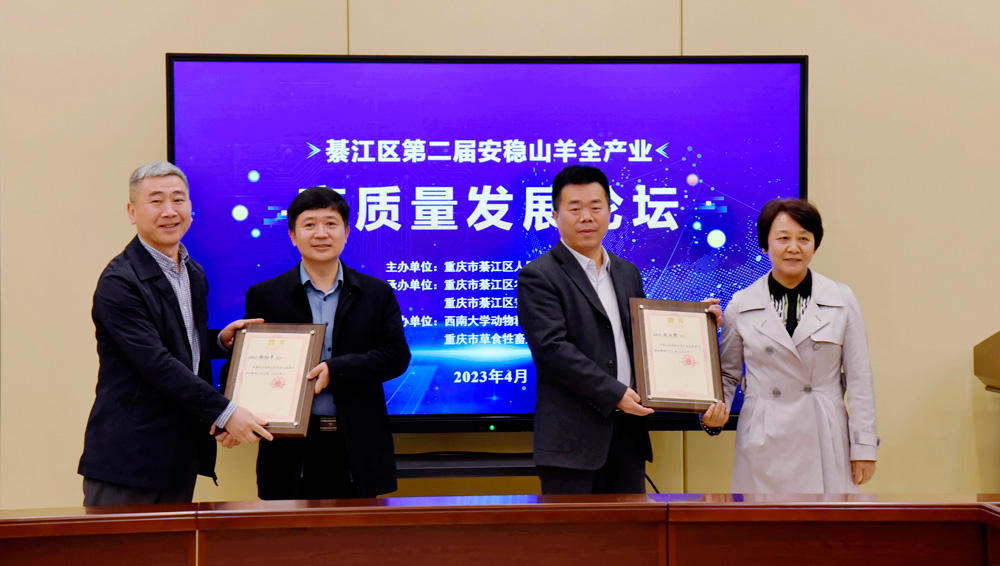 论坛由綦江区副区长王德兵和綦江区农业农村委主任曹长科主持。会上,綦江区政协副主席刘林向赵永聚颁发了“綦江区安稳山羊产业发展顾问”聘书;綦江区安稳镇党委书记王宗恒介绍了安稳山羊产业发展、品牌打造及市场营销构想;学院陈小川汇报了“安稳山羊产业数智赋能规划设想”;邬威汇报了“安稳山羊深加工产业发展现状”。与会专家充分肯定了学院在綦江安稳山羊产业发展方面所做的贡献,并围绕山羊育种、种养循环、产品加工、智能化畜牧等方面开展深入交流,共同为安稳山羊全产业链高质量发展建言献策。