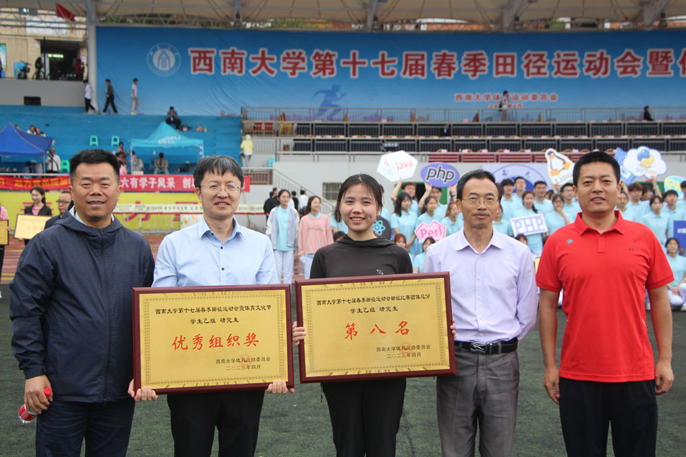 第十七届春季田径运动会暨体育文化节并再创佳绩。在本届运动会上,学院获得学生体质健康达人挑战赛一等奖、本科生团体总分第三名、研究生团体总分第八名的优异成绩,这是全院师生共同努力的结果,也是学院“六有”新动科人才培养收获的荣誉。