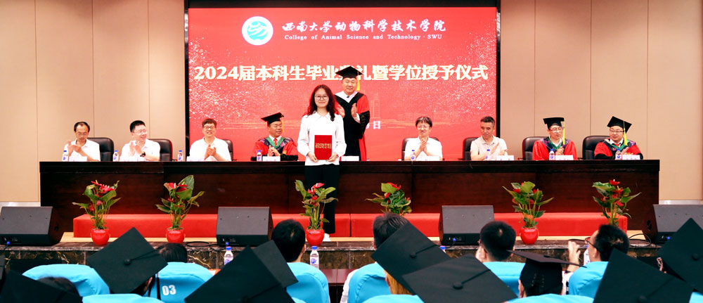 6月20日下午,学院在荣昌校区2211报告厅举行2024届本科生毕业典礼暨学位授予仪式,学校党委常委、副校长葛信勇,学院党委书记赵智华,院长、学术委员会主任赵永聚,副院长向钊、赵中权,优秀校友代表、陆军军医大学基础医学院实验动物学教研室主任、国家重点研发计划项目首席科学家王勇,学院学术委员会委员张龚炜等出席,学院教师代表、辅导员、毕业班班主任、全体在校本科毕业生、在校生代表、家长代表参加。仪式由党委副书记、纪委书记文武主持。