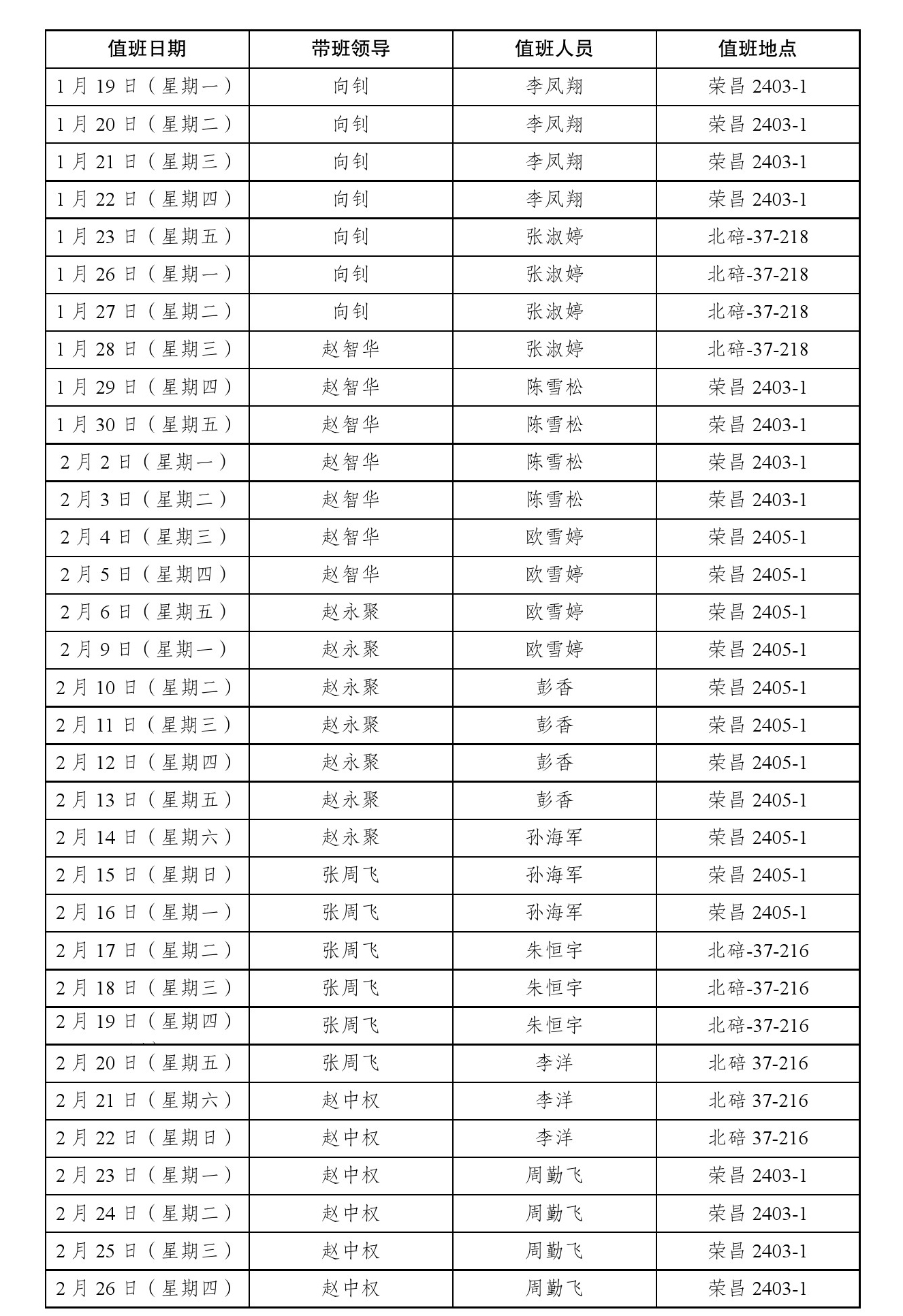 备注:值班时间为8:30—12:00,14:30—17:30。