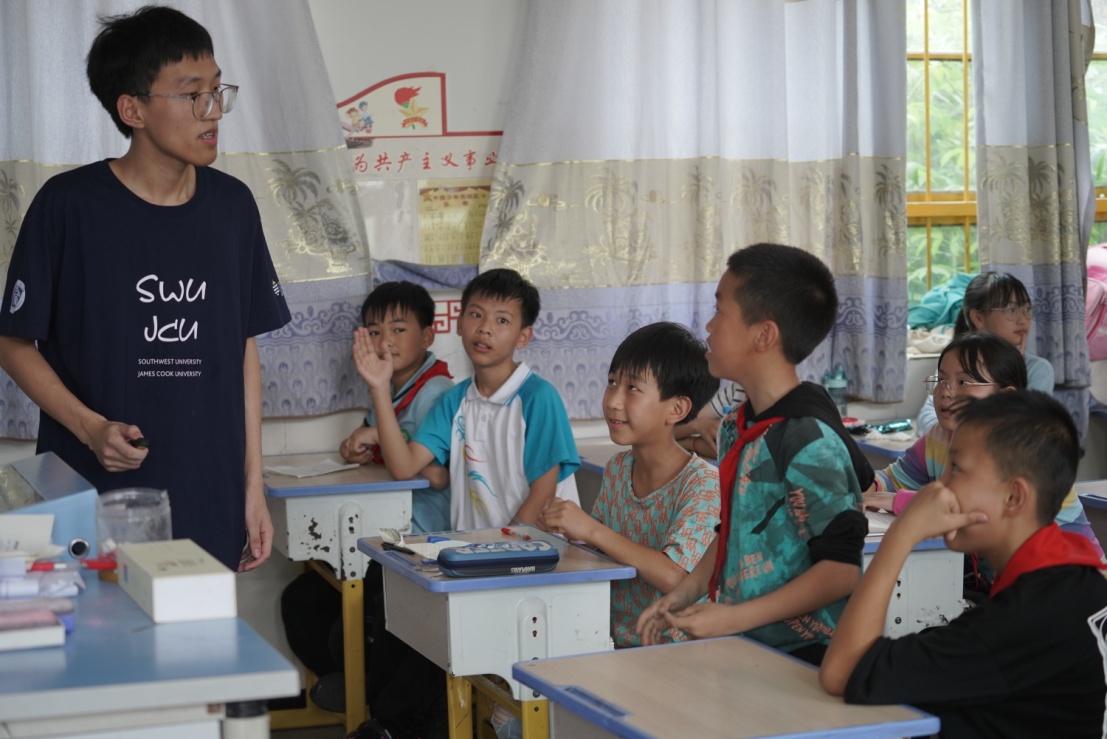 中外合作办学项目学生组成的黑叶猴资源保护科普宣讲小队来到位于金佛山国家级自然保护区境内的中国海外三泉希望小学和山王坪镇中心小学为小学生进行科普宣讲。