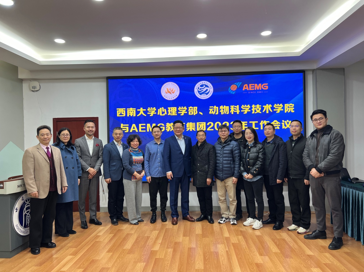 文武副书记代表学院介绍动物科学专业2022年办学情况及2023年重点工作安排。随后AEMG集团执行董事王晶教授与参会人员就疫情常态化之下中外合作办学的发展趋势展开了激烈讨论,并提出了有效建议。会后会议双方进行合影留念。