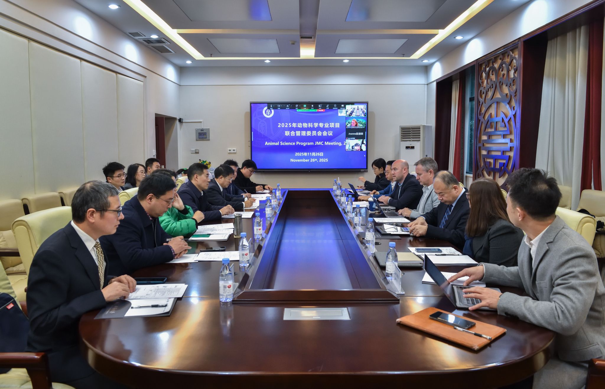 11月26日,我校与澳大利亚詹姆斯库克大学合作举办的动物科学专业本科教育项目2025年度联合管理委员会会议以线上线下相结合的方式顺利召开。学校副校长白显良、詹姆斯库克大学代理副校长Ron White、学院党委书记赵智华、学院副院长向钊以及双方项目管理团队代表共同出席了会议。会议由学校国际合作与交流处副处长褚修伟主持。