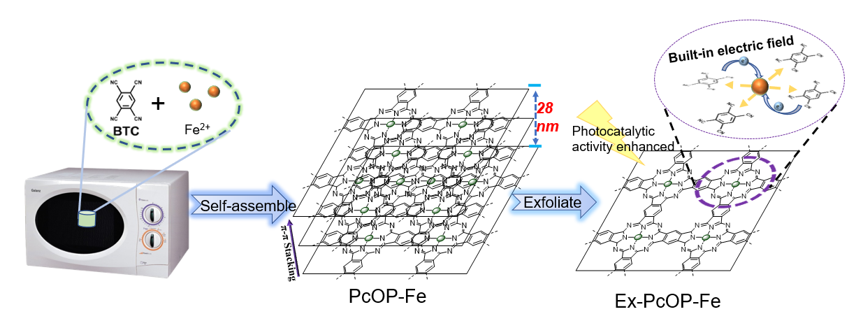 图1. 有机光催化剂(Ex-PcOP-Fe)的快速高效制备示意图